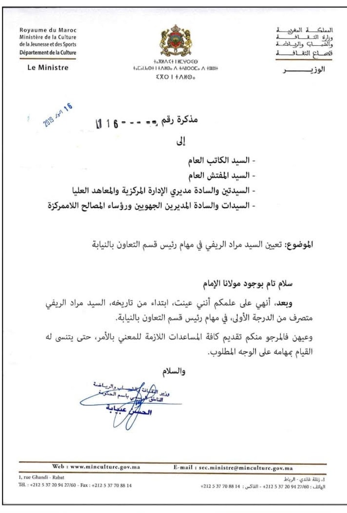 وختم الحسن عبيابة وزير الثقافة والشباب والرياضة والناطق الرسمي بإسم الحكومة، مذكرة التعيين بالقول: ”المرجو منكم تقديم كافة المساعدات اللازمة”، والحقيقة أن الذي يحتاج إلى المساعدة هو أنت السيد “الوزير الكفء” الذي سقطت على ما سُمي بـ”حكومة الكفاءات” بمظلة ولي نعمتك إدريس الراضي،  وعليك بالقيام بدروس إضافية في التواصل الحكومي والسياسي، وكيفية صياغة المراسلات والمذكرات والوثائق الإدارية.