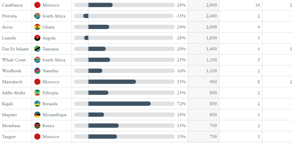 وارتفعت أعداد المليونيرات في مدينة الدارالبيضاء بنسبة 28% لتصل إلى 2800 ثرياً يملكون مليون دولار، بينهم 14 مليونير يملكون أكثر من 100 مليون دولار، و 2 مليارديرات “بيليون دولار”.