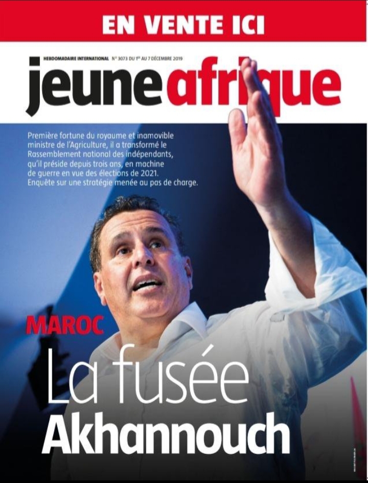 خصصت المجلة الفرنسية “جون أفريك”، غلاف عددها لشهر دجنبر، لرئيس حزب التجمع الوطني للأحرار، عزيز أخنوش، لتسليط الضوء على ما اعتبرته “إنجازاته السياسية”، وذلك بعد تخصيصها حيزا هاما في عددها لشهر مارس الماضي لحوار مع “باطرون الأحرار”، الذي حاول بإصرار ملفت للنظر إظهار متانة علاقته بالملك محمد السادس وقربه منه جدا، في إشارة غير مباشرة إلى كونه صديقا له.