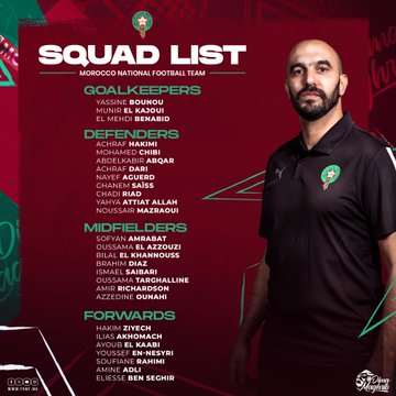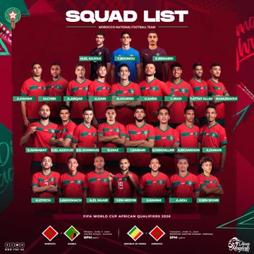 وفيما يلي لائحة المنتخب المغربي: